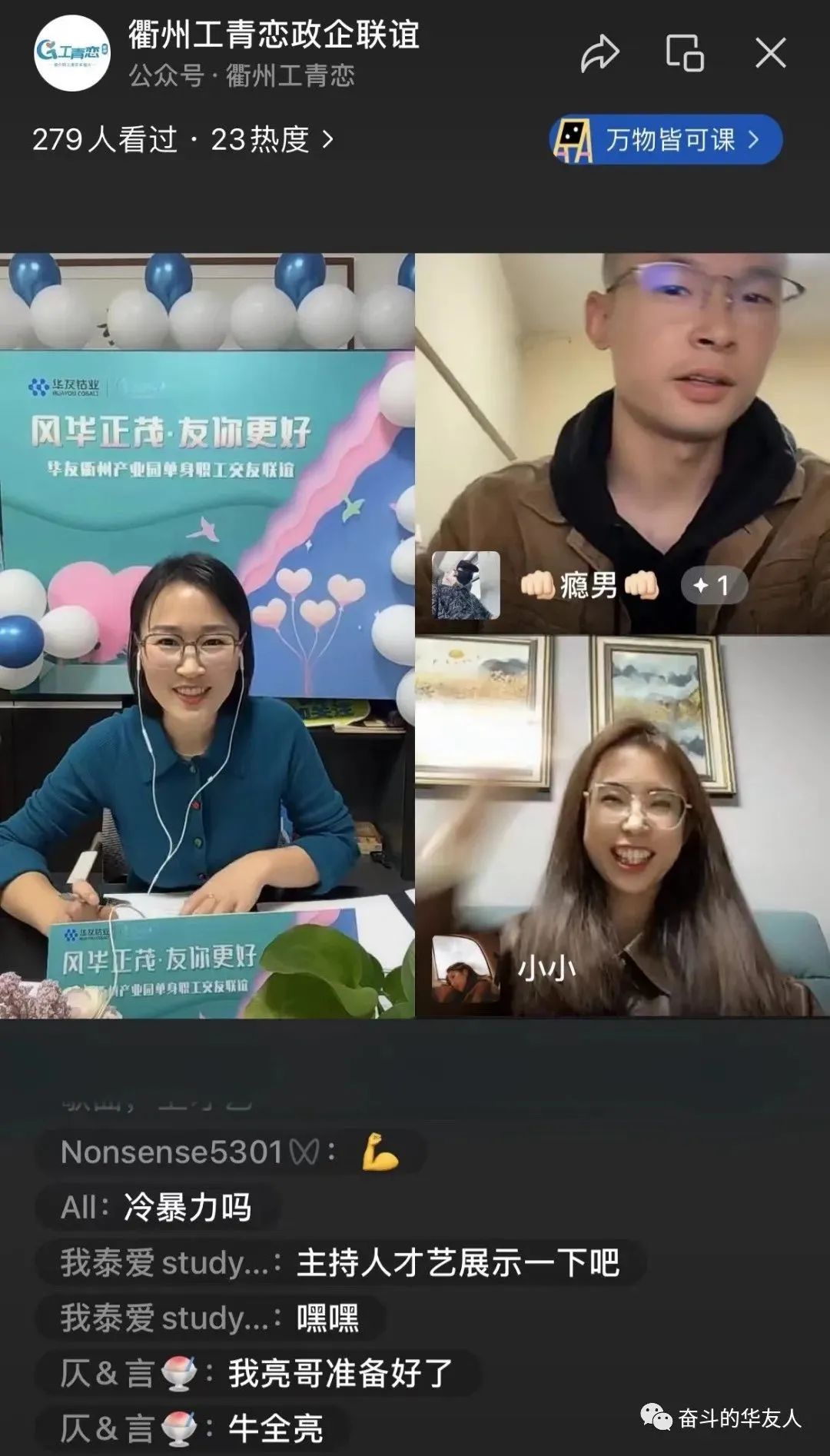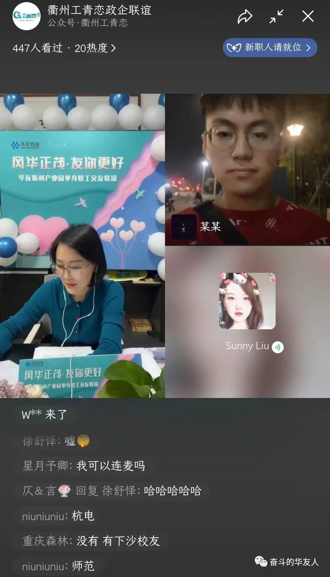 10ÔÂ29ÈÕ19:00 ¡¶¡°Ôµ¡±À´ÊÇÄã¡·ÏßÉÏÁµ°®Ö±²¥¼ä¿ªÆôºó£¬£¬£¬±ãÓÐ200ÓàÃûÖ»ÉíÄÐÅ®±¨ÃûÓ¿Èë¡£¡£¡£¡£Ö±²¥¼äÄÚ£¬£¬£¬Ö÷³ÖÈËÒÔÏÖ³¡»¥¶¯¡¢×ÊÁÏչʾ¡¢ÍøÂçÁ¬Ïߵȷ½·¨£¬£¬£¬Ö¸µ¼Ö»ÉíÖ°¹¤ÃÇÔÚÏßÉÏÖ±²¥¼ä³ä·Öչʾ×ÔÎÒ£¬£¬£¬¿ª·¢ÁËÒ»ÌõȫеĽύÇþµÀ¡£¡£¡£¡£Í¬Ê±£¬£¬£¬Í¨¹ýÖ±²¥Áª¶¯¡¢±íÐÄÒâ¡¢¼ÓÖ¿ÓÑ¡¢ÈºÁÄ»¥¶¯¡¢ÐĶ¯Ôµ·ÖǽµÈÏßÉÏÏàͬģʽ£¬£¬£¬È¡µÃÁ˸ü¶àͬÁäÖ»ÉíÈËÊ¿µÄ¹Ø×¢£¬£¬£¬×èÖ¹Ö±²¥¿¢Ê£¬£¬£¬ÀۼƼÓÈëÈËÊý´ï490ÓàÈË£¬£¬£¬ÓÐÀû½â¾öÁËÖ°¹¤Òòʱ¼ä¡¢½»Í¨¡¢µØÇøµÈÏÞÖÆ£¬£¬£¬×谽ύµÄÎÊÌâ¡£¡£¡£¡£
