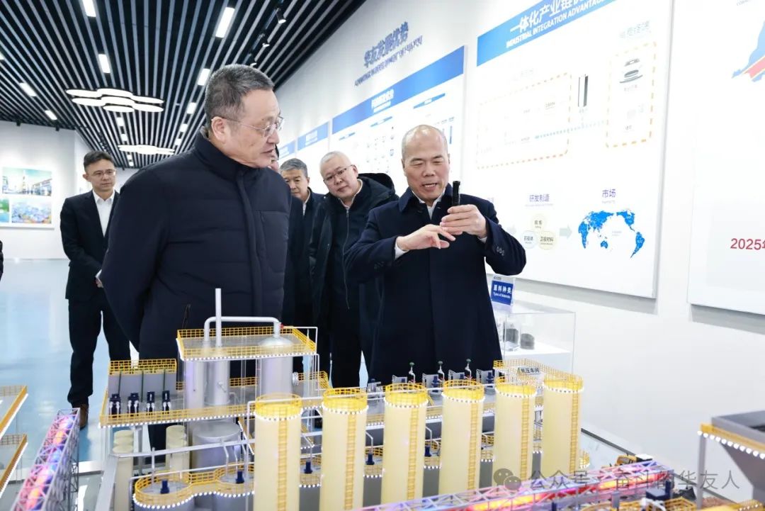 Before the discussion session, Ge Honglin also toured the Huayou exhibition hall, gaining a detailed understanding of the company's corporate culture, history of global development, industrial layout, project construction, development planning, and the operational performance in recent years.