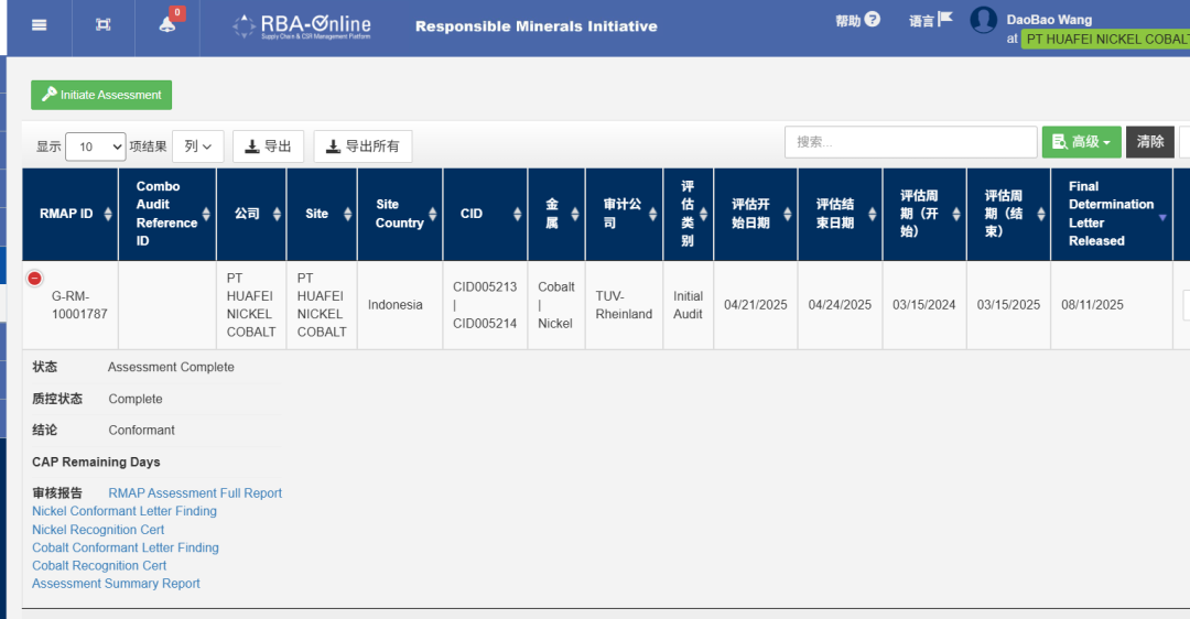 8月,,认真任矿产建议(The Responsible Minerals Initiative,,简称RMI)官方网站宣布新闻,,华飞镍钴(印尼)有限公司乐成通过认真任矿产包管流程(Responsible Minerals Assurance Process,,简称RMAP)审核,,华飞成为印度尼西亚同时对镍、钴金属供应链开展矿产供应链尽责治理并通过 RMAP 审核的冶炼企业。。