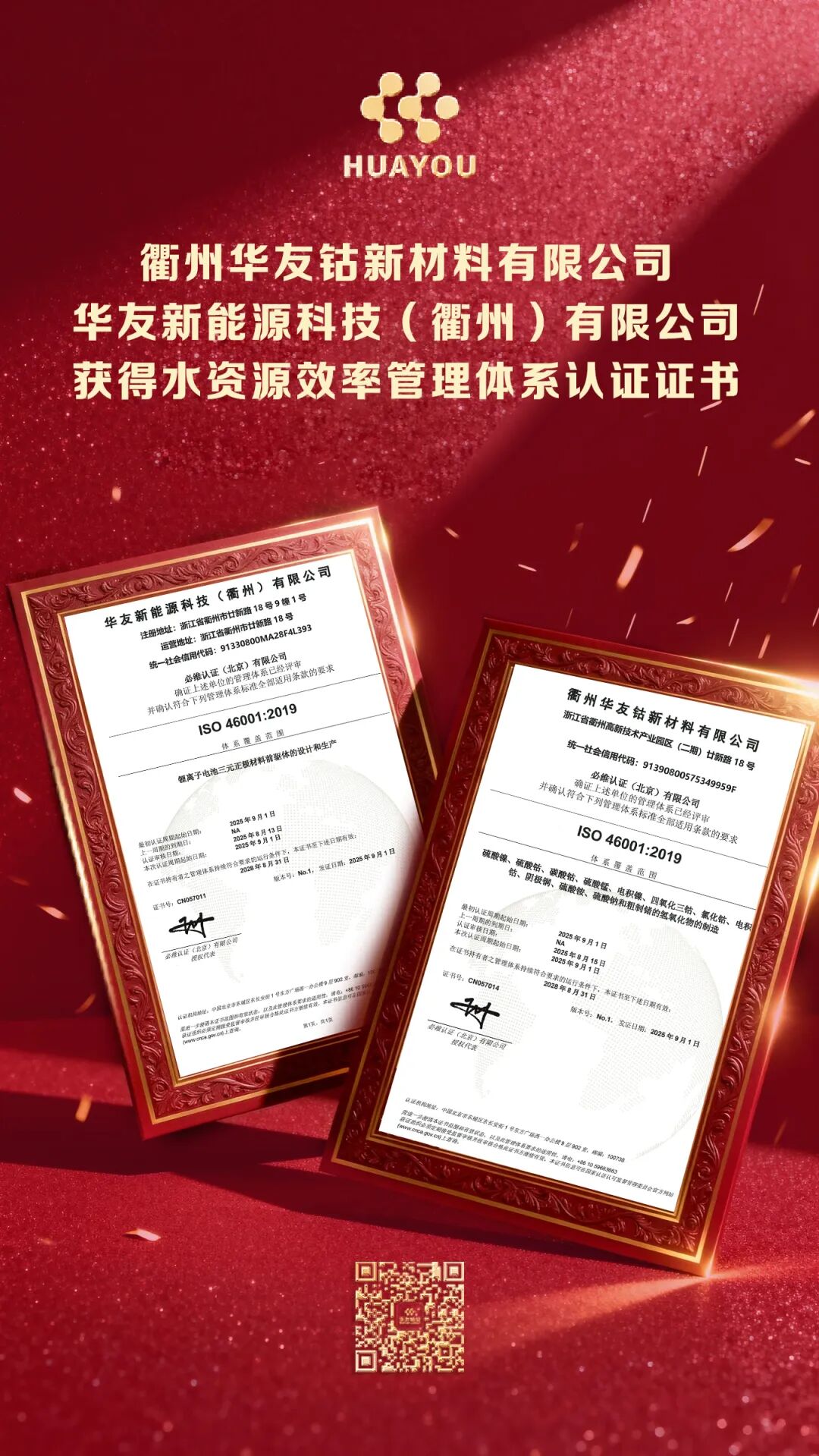 ¿ËÈÕ£¬£¬£¬ÔÚ¡°´ÓºÏ¹æµ½×¿Ô½ÒÔÇéÐÎΪ½¹µãµÄ¿ÉÒ»Á¬¼ÛÖµÔ¾ÉýÖ®µÀ¡±ÂÛ̳ÉÏ£¬£¬£¬½ðɳjs93252îÜÒµÆìÏÂáéÖݽðɳjs93252îÜÐÂÖÊÁÏÓÐÏÞ¹«Ë¾ºÍ½ðɳjs93252ÐÂÄÜÔ´¿Æ¼¼£¨áéÖÝ£©ÓÐÏÞ¹«Ë¾Ë«Ë«È¡µÃISO46001Ë®×ÊԴЧÂÊÖÎÀíϵͳÈÏÖ¤Ö¤Ê飬£¬£¬³ÉΪÐÂÄÜԴ﮵çÖÊÁÏÐÐÒµÊ×¼Òͨ¹ý¸Ã¹ú¼ÊÈÏÖ¤µÄÆóÒµ£¬£¬£¬ÕÃÏÔÁ˹«Ë¾ÔÚÂÌɫ֯ÔìÓë¿ÉÒ»Á¬Éú³¤ÁìÓòµÄÏòµ¼Ö°Î»£¬£¬£¬Îªï®µçÐÂÄÜÔ´¹¤ÒµÁ´Ê÷Á¢ÁËË®×ÊÔ´ÖÎÀíµÄбê¸Ë¡£¡£
